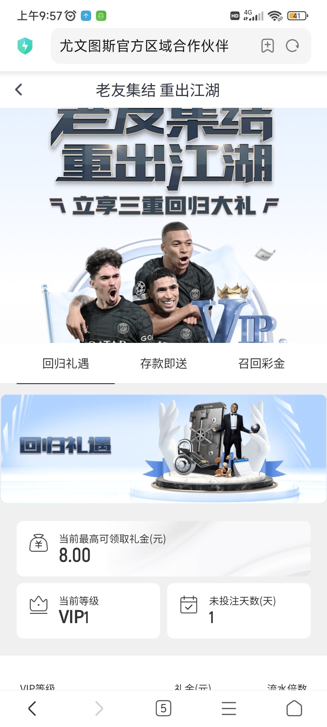 这两个平台等级有V1以上的 大于15天没投注的 去老友集结那个活动 最低领8 可以找客服碰瓷电话彩金