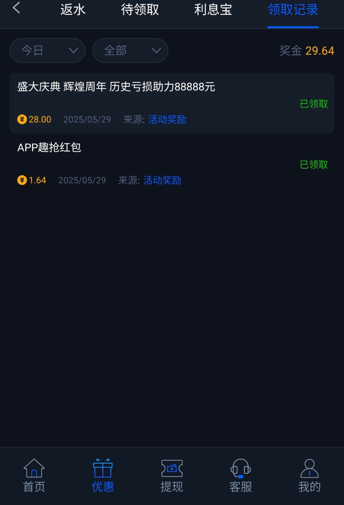 有亏损的兄弟可以上号领一下回馈