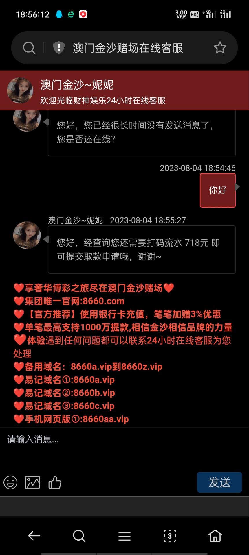 送了十九昨晚打到三百多不给下,最低提款五百,后面到了八百多下款五百说流水不够,又打了二百多流水下了五百,到账了,剩下三百多打到五千多直接让我充值