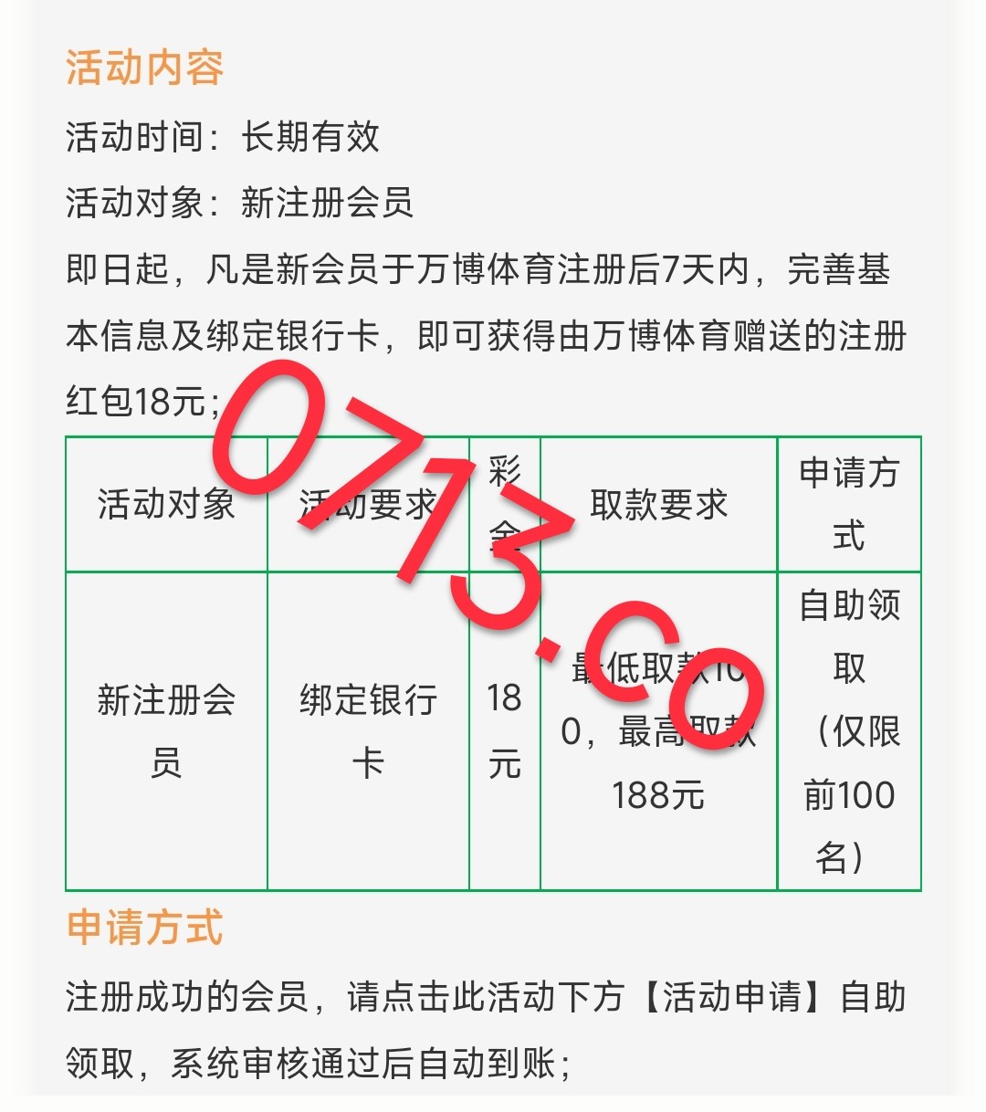 新用户注册绑卡优惠里面自助领取18元彩金无游戏限制 最低提款100元 最高提款188元