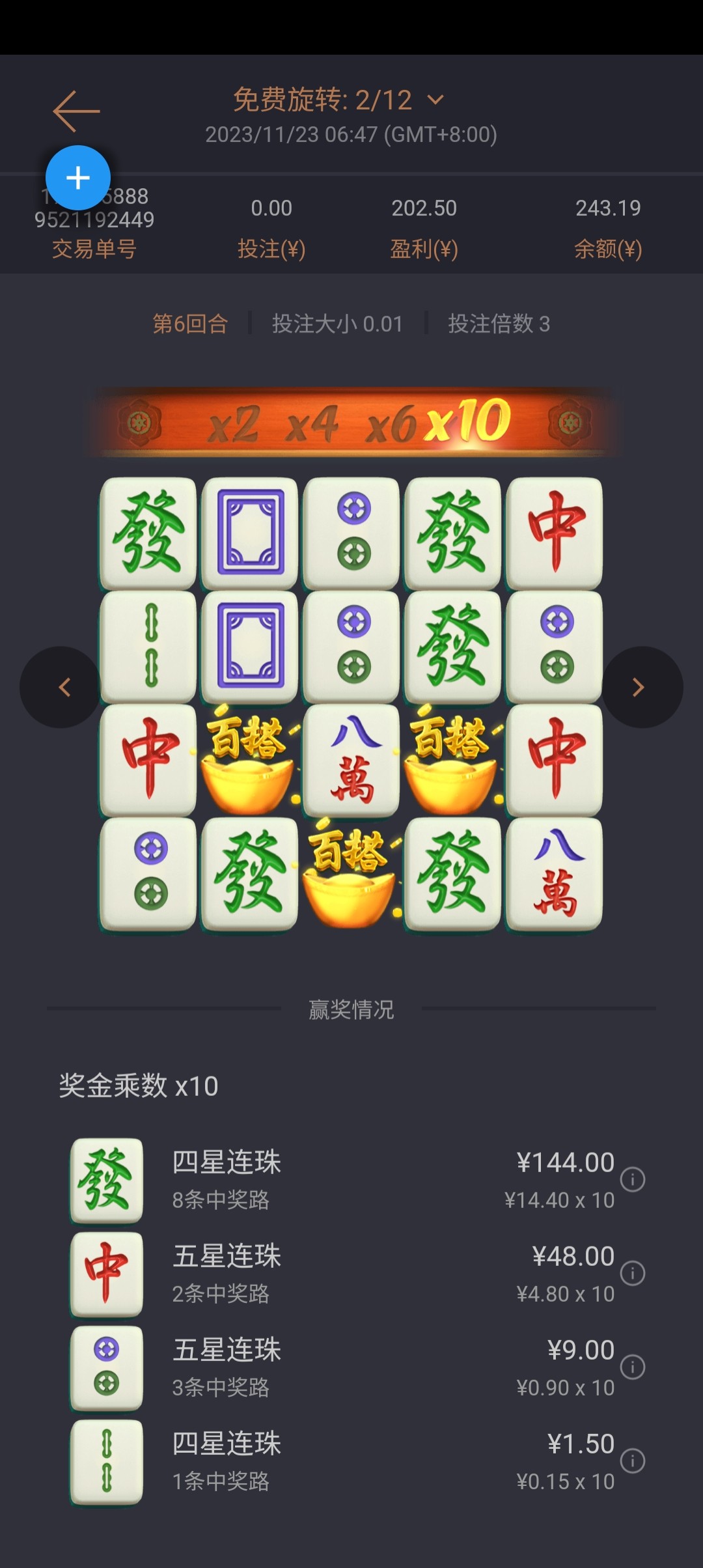 该活动需完成6倍流水,需全程在各场馆老虎机,如投注其他类游戏将扣除所有红利以及赢利: