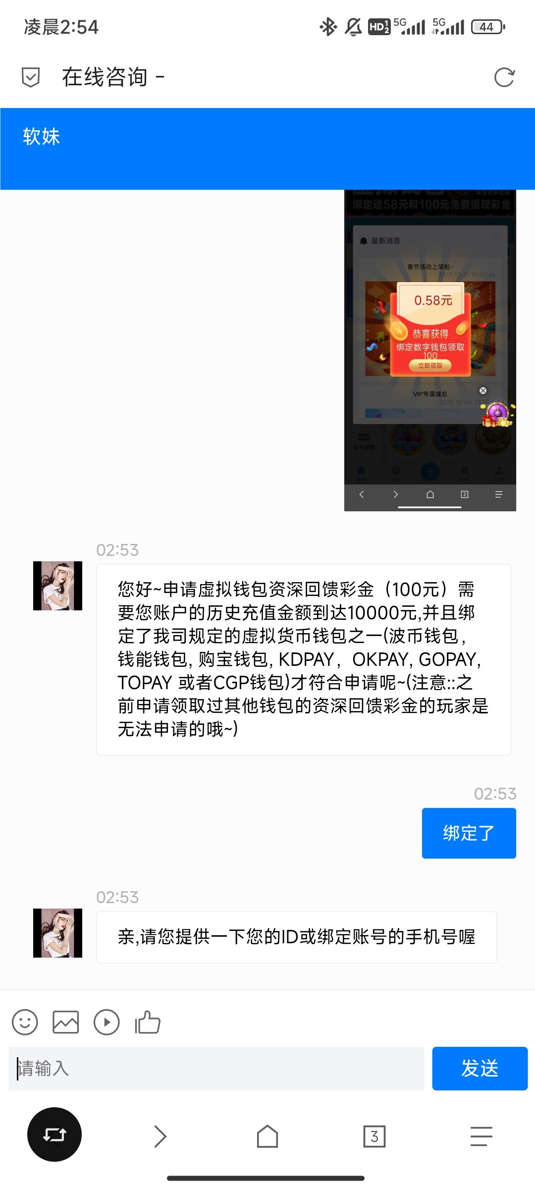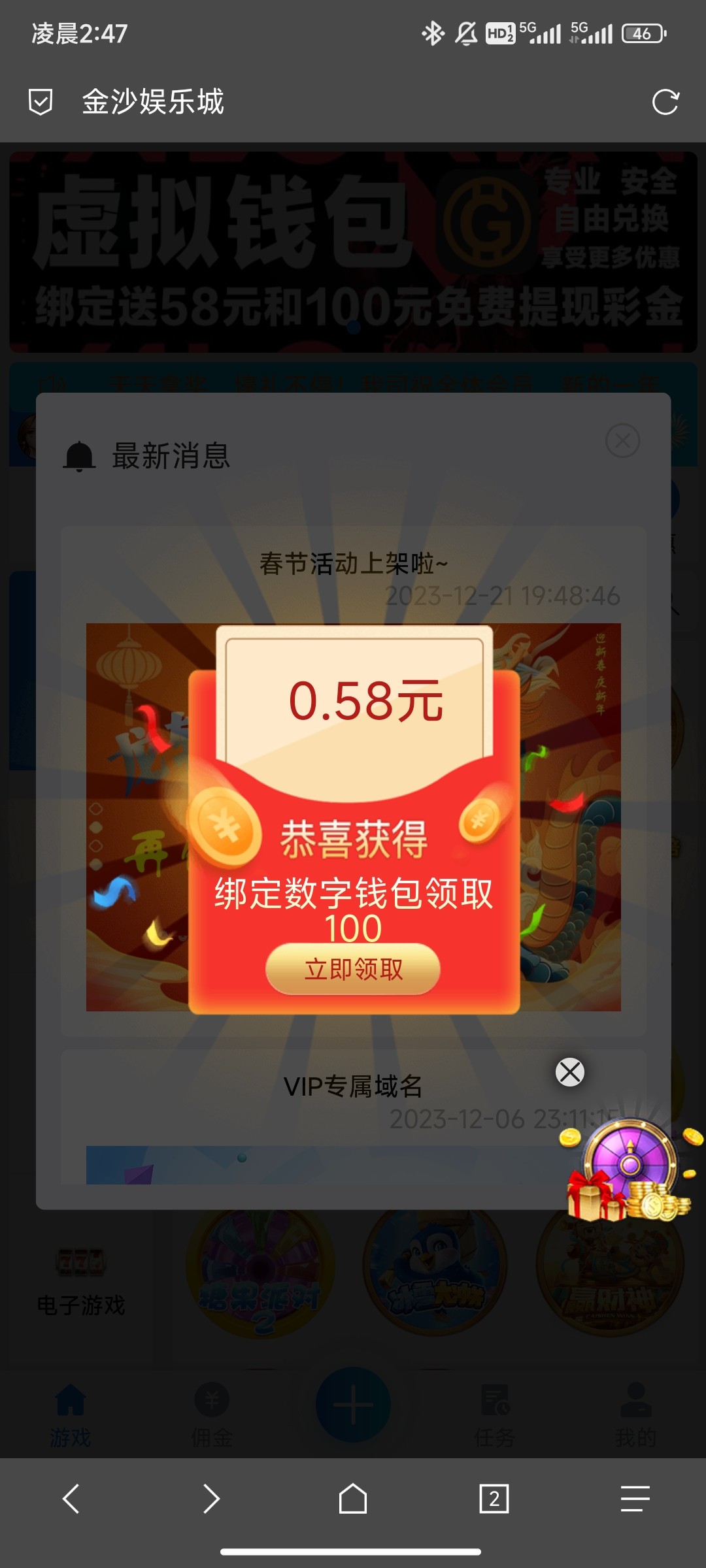 以前充过1000+的绑定钱包领取58