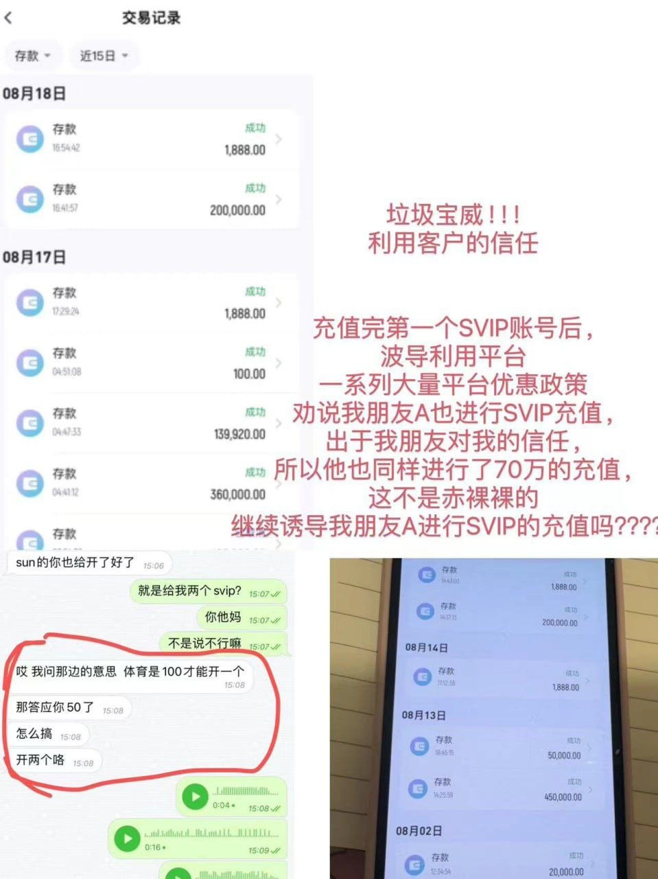 建立在信任宝威平台的前提下,我加大了投注量,但从7月份开始,平台开始找各种理由借口拖延提款的时间,但好在名为波导的高管,都会在第一时间及时处理这些问题,并且得到了有效的解决,导致我越来越信任他,且进行了大金额充值,从而慢慢的掉入宝威精心谋划的陷阱....