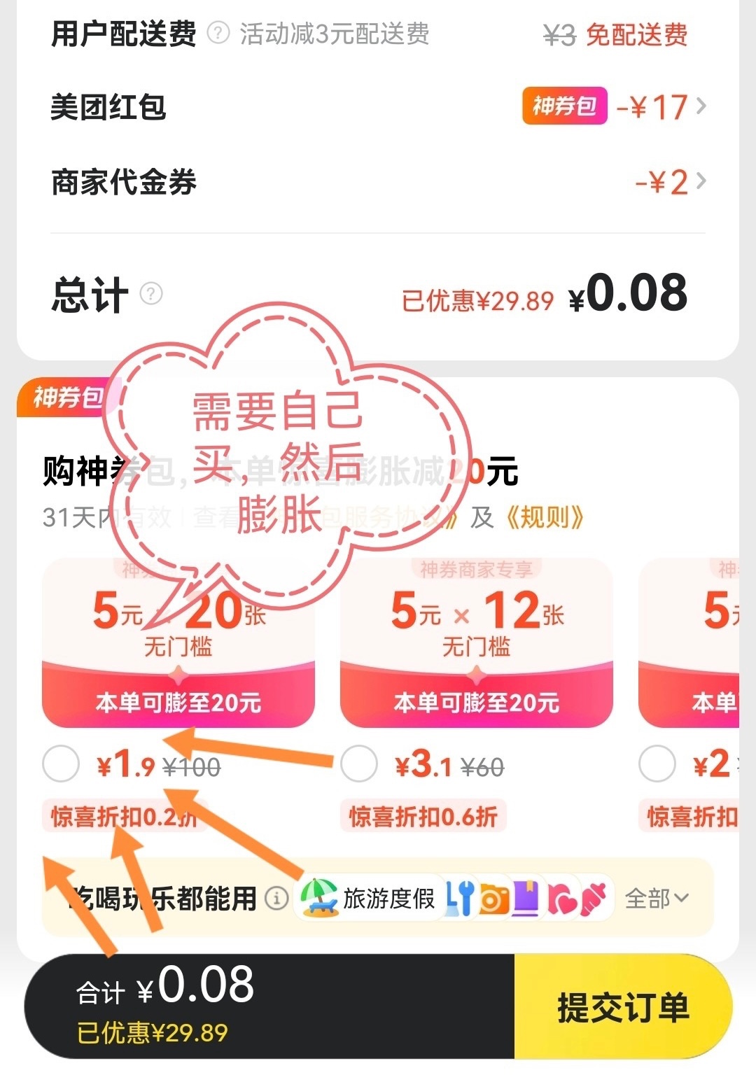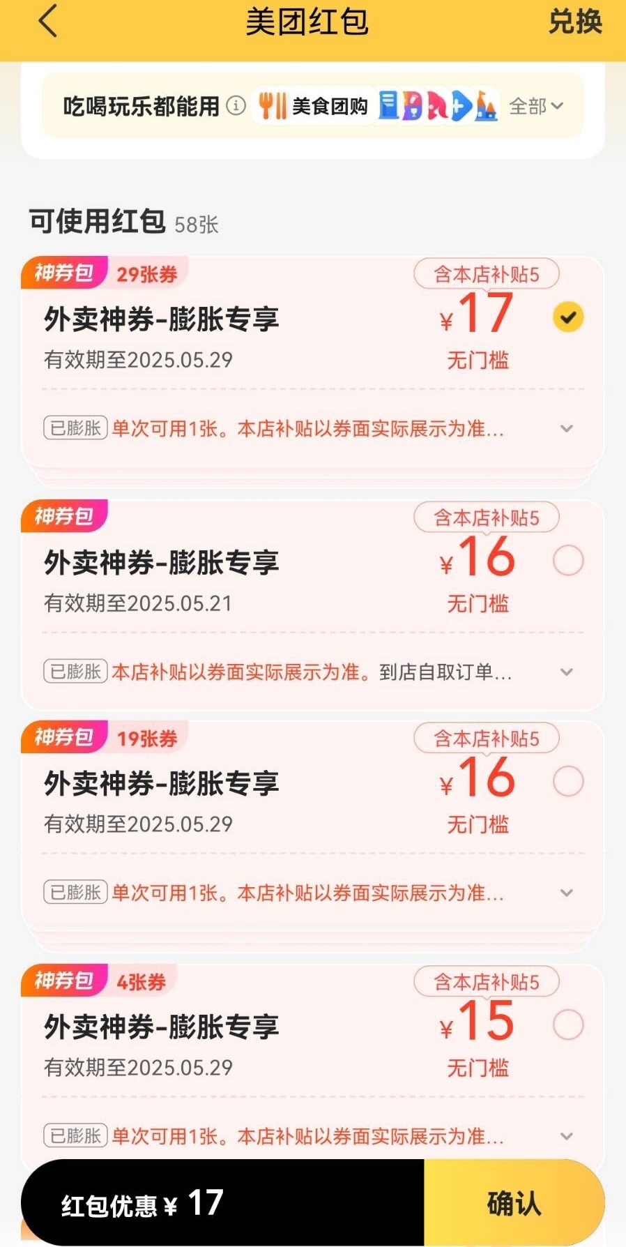 然后膨胀红包都是10-12无门槛红包,经常点外卖的可以试试,新号不行