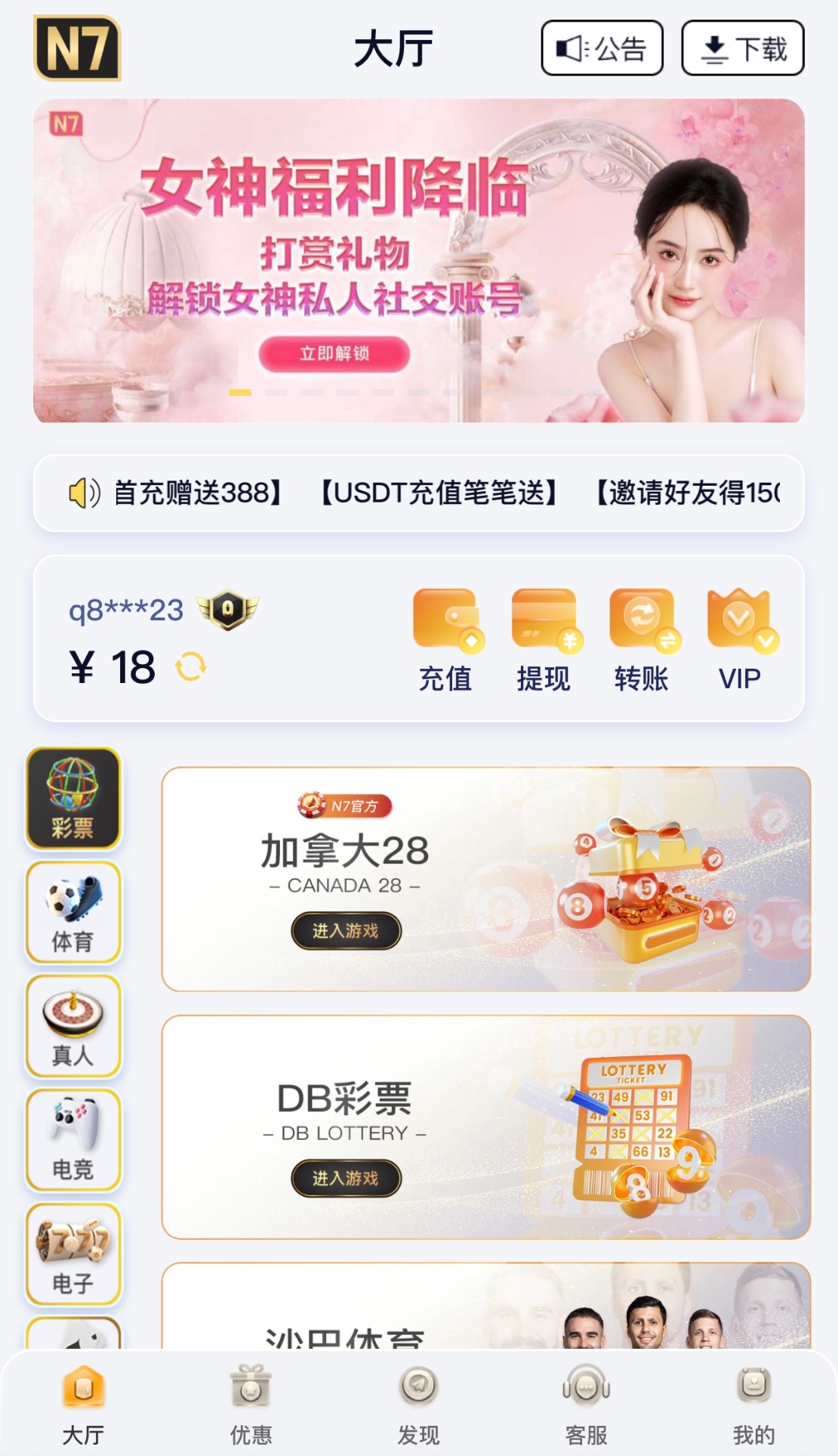 碰瓷短信特邀送18,下载APP绑定手机号,限电子,10倍流水