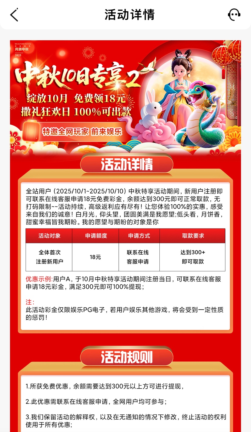 首次注册联系客服领取18彩金,盈利满300取款,仅限PG电子
