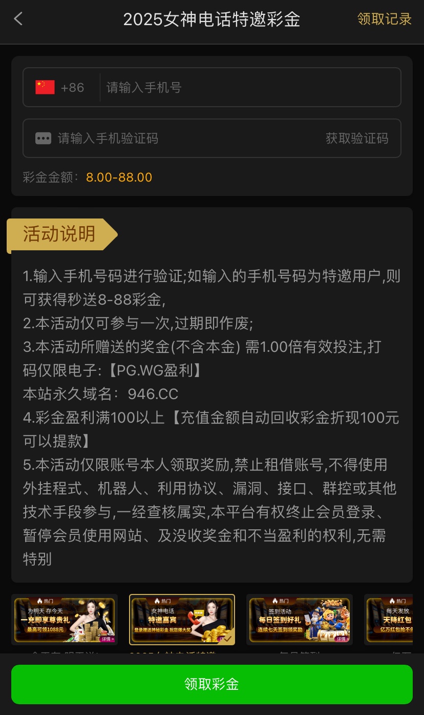 感兴趣的兄弟可以去碰瓷看看,自己是不是特邀,一倍流水,仅限PG/WG电子