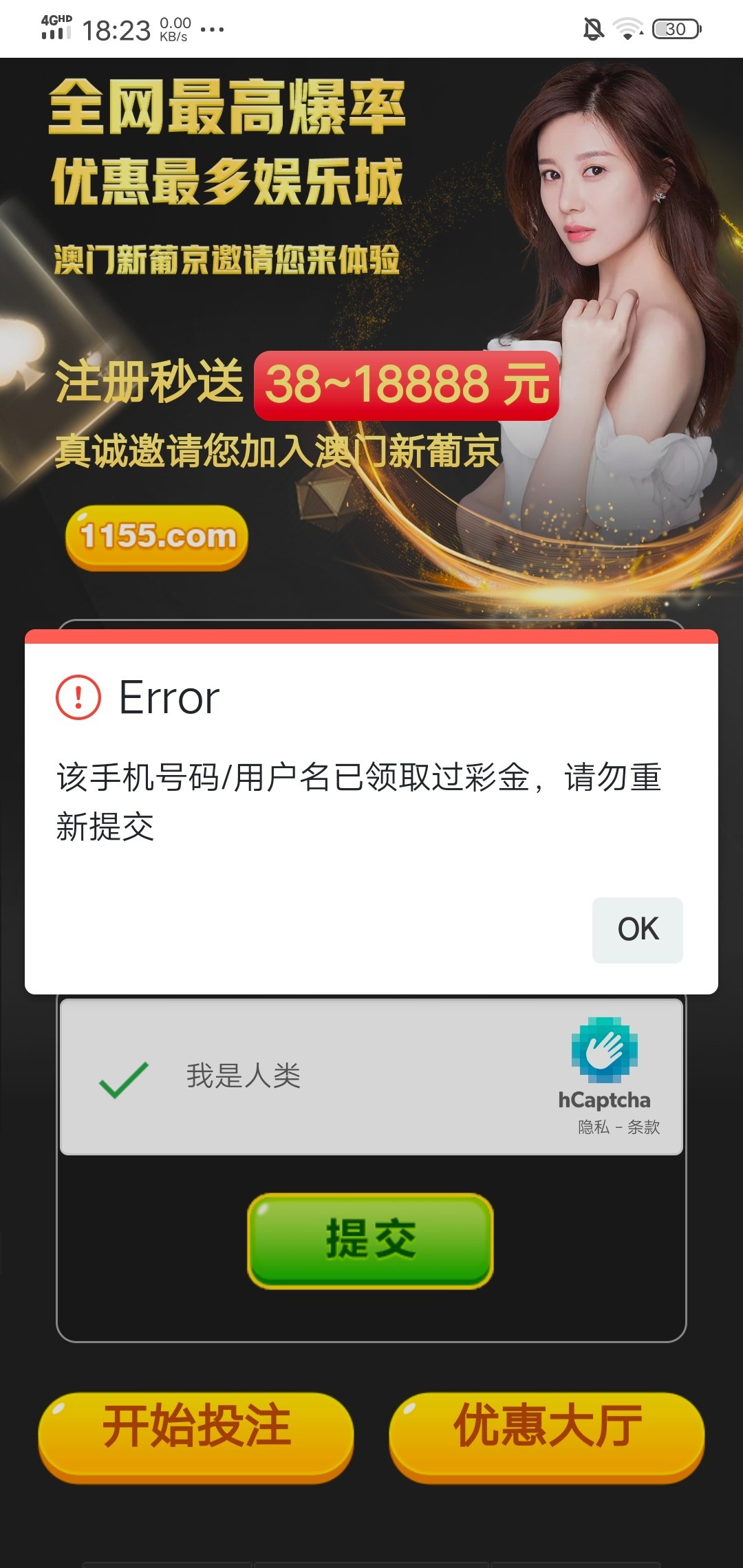 新用户先注册绑卡,再返回链接自助申请38彩金特邀碰瓷