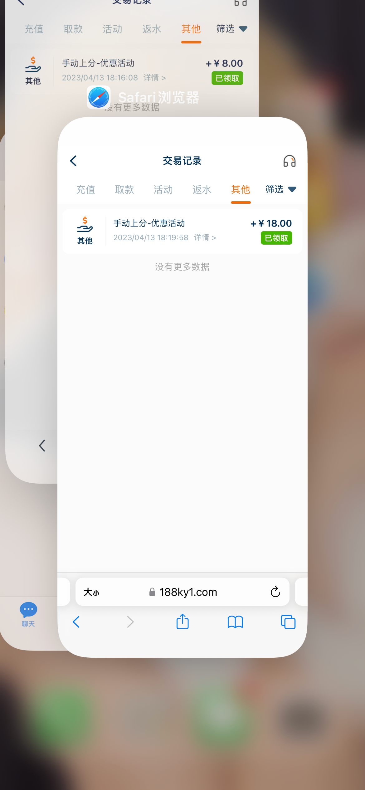 我两个号 一个8 一个18