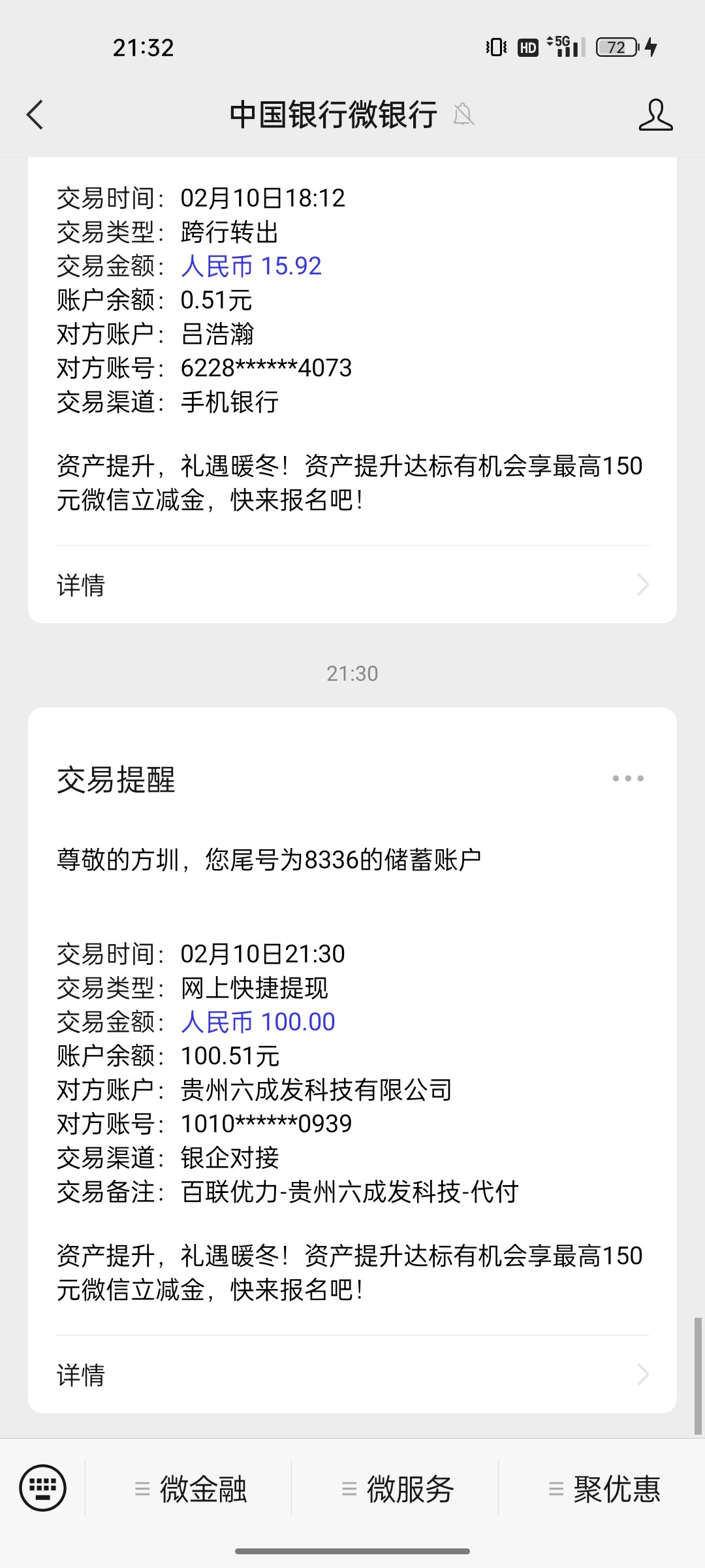 提100已到账