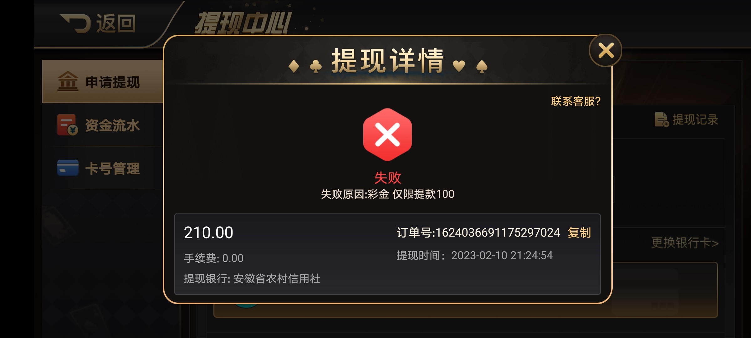 提了2个号,一个成功,一个多账号扣除赢利