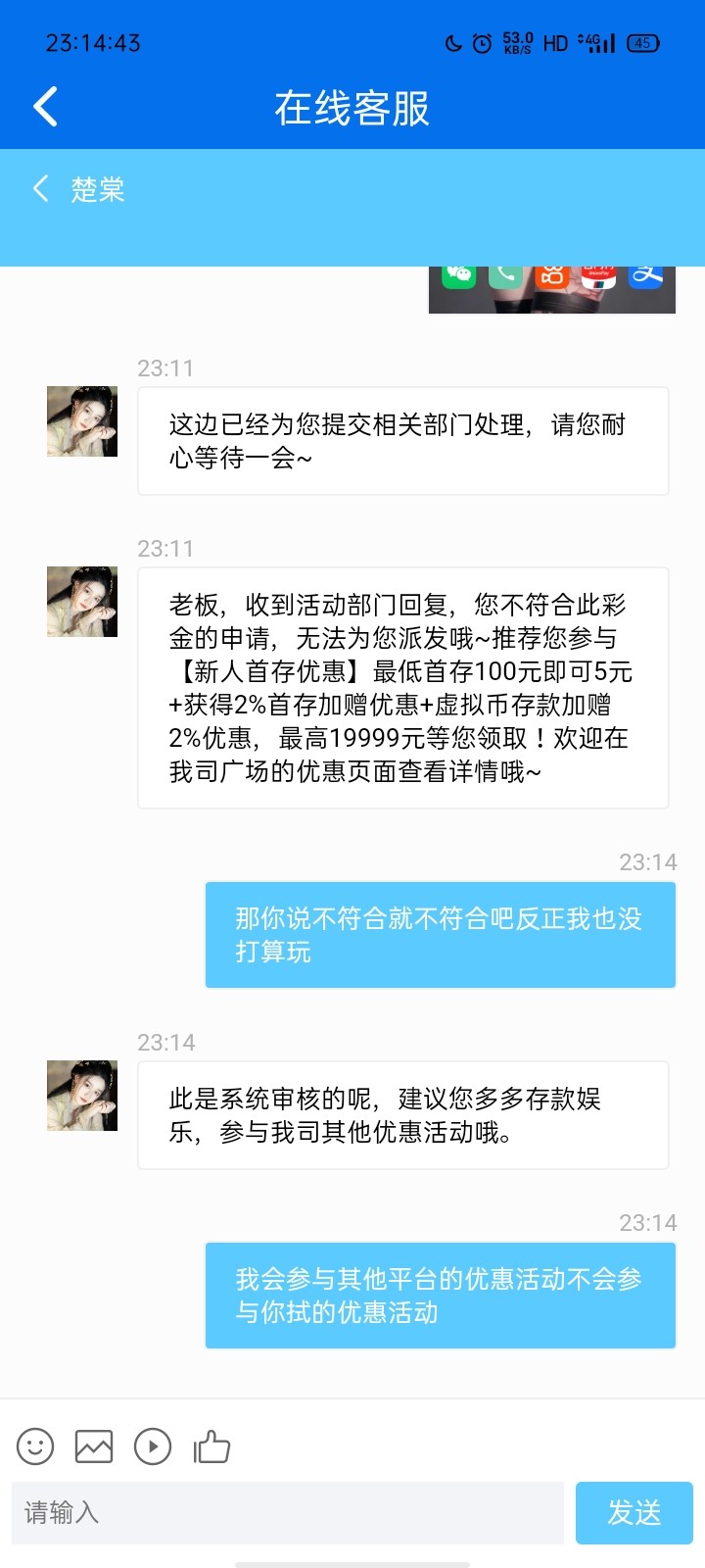 亲,很遗憾您申请的注册彩金系统审核不通过,无法为您派发~