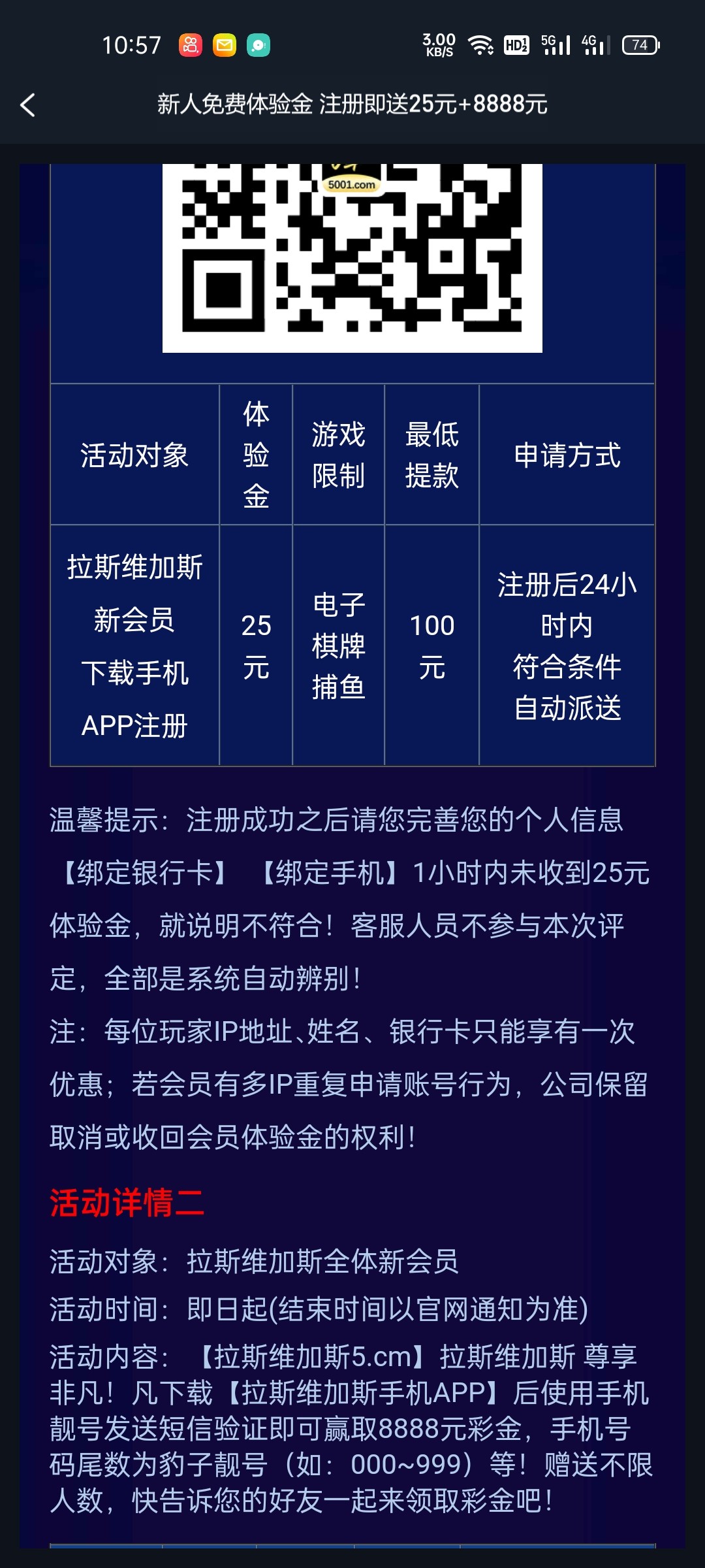 注册绑定好完善信息,1小时内 自动送25