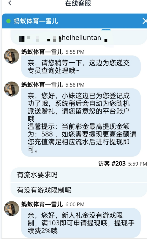 蚂蚁体育复活,注册绑定好信息银行卡,找客服直接申请,送38,只要不是多IP,基本都送,102即可提款,没有游戏限制。宜黄速去。