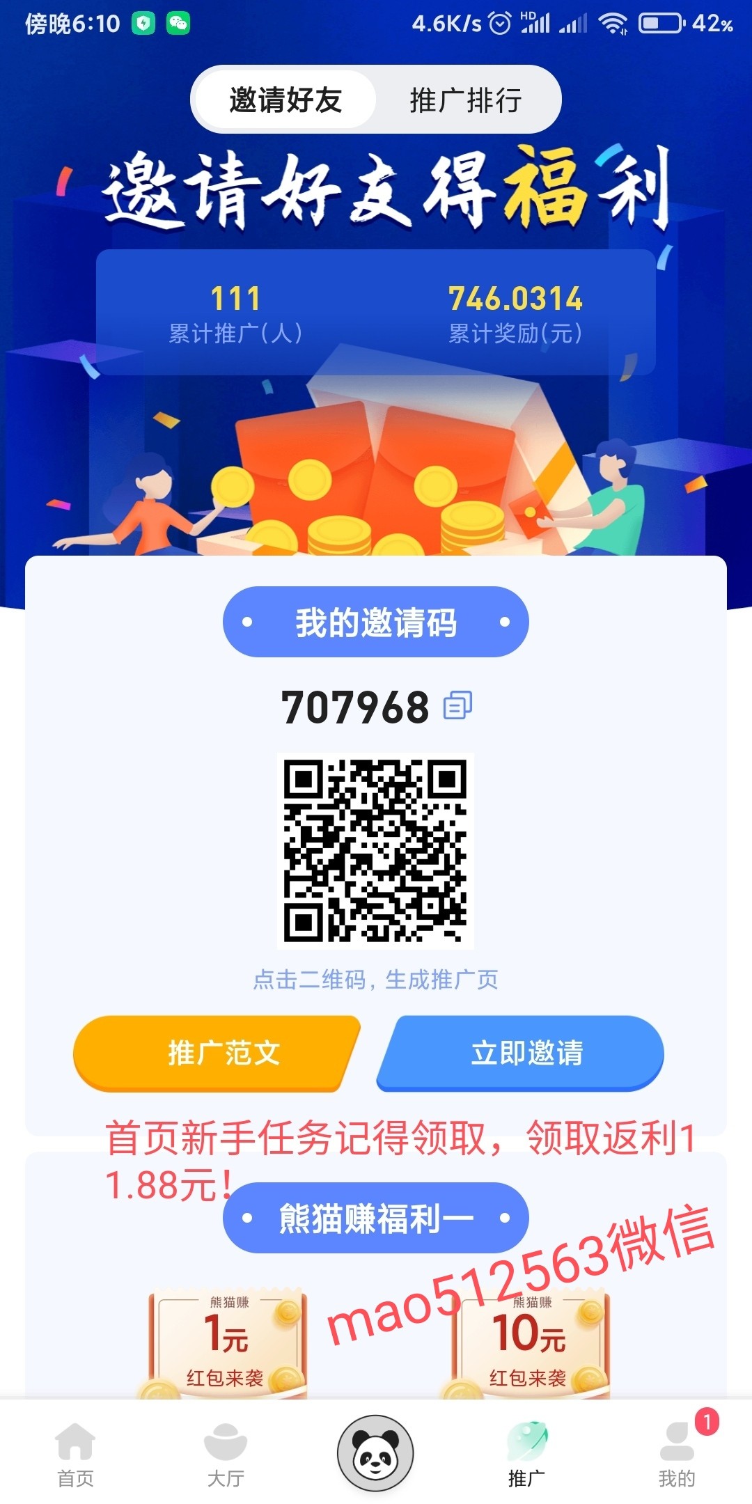 昨天走我这个二维码的有两个兄弟,看到加我图上微信领取11.88。