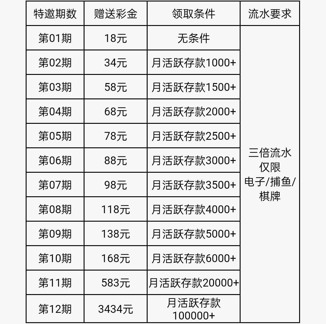 亲,短信特邀第01期彩金活动已结束了,目前开启第02期起, 月活跃达到后即可实时到在线客服申请,仅限短信特邀新贵宾,谢谢